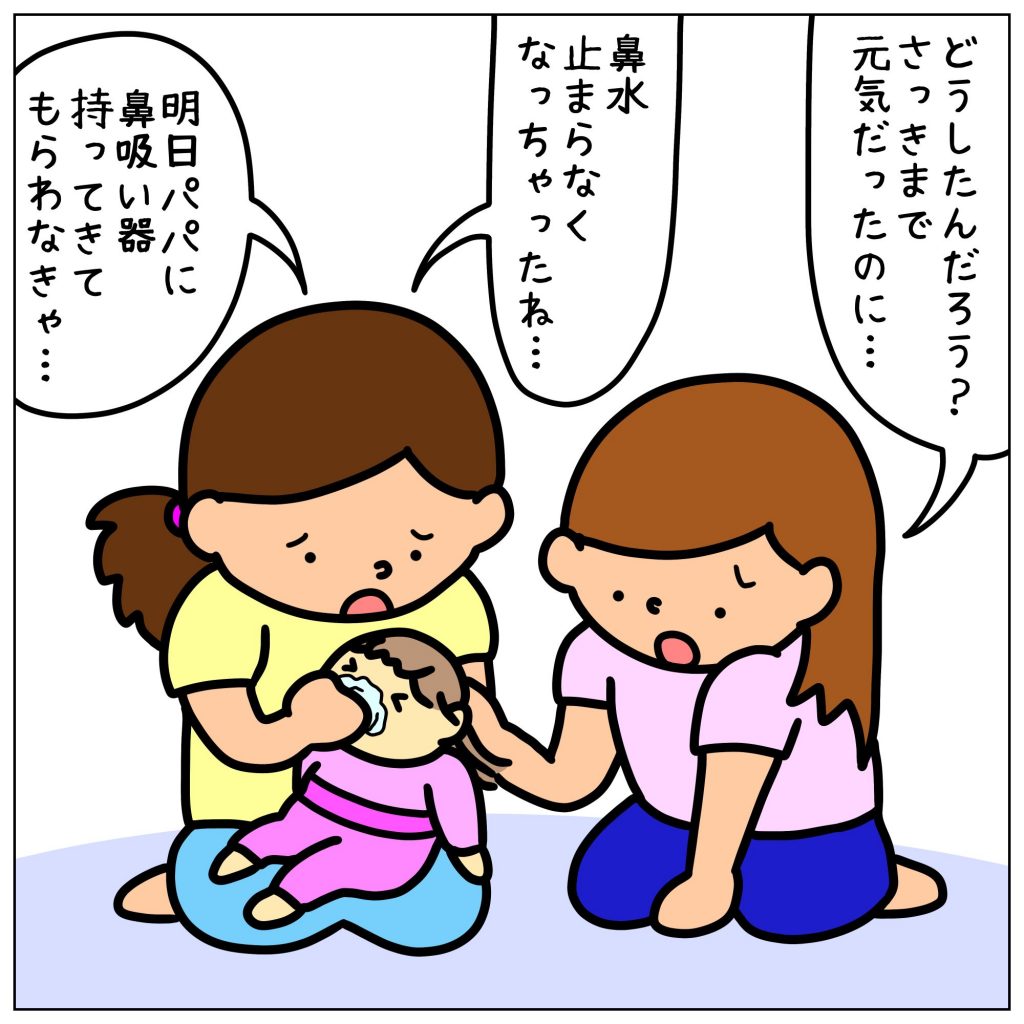 初めての1週間【2日目②】2020.11.20育児絵日記はーちゃんととーくん, 初めての1週間 前回のお話初めての1週間【2日目①】はーちゃんに異変が… 広告 あとがきそれまで元気だったのが一転急に鼻水が止まらなくなってしまいとても心配しました…💦(幸い熱は出ませんでしたが鼻が詰まって辛そうにしてたのでかわいそうでした😭)ずっと「お姉ちゃん」を頑張っていたはーちゃんに初めて現れた『変化』でした🍀次に続きます! 1 コメントはこちら 同じカテゴリの記事 年長さんが卒園して…☆ とーくんのビックニュース☆ 新しいマーチー☆ ママがさびしくないように…☆ ウェルカム☆やきもち 春休みの旅行の計画☆ ママは〇〇が下手くちょ☆ 子どもたちの癖強ネーミング☆ 名探偵とーくん☆ 結婚の決め手…☆ ココと勝負☆ とーくんの言い間違い☆ ランドセルどうする☆ 自転車の中学生☆ 明日の宿題は…☆ お風呂場にやってきて…☆ 人の話を聞くときは…☆ 心の中の鬼☆ やっぱり鬼怖い☆ 鬼をやっつける☆ 幼稚園で豆まき☆ ココ(猫)を愛でる方法☆ 寝るときの場所☆ パパのお休み☆ 大事なもちもち☆ 「大人」はうれしいけど…☆ 「大人」って言われると…☆ かちゅおぶちで子ども大人☆ 人生は山あり谷あり☆ アレルギー!?騒動☆ ワクワクが止まらない☆ 12月は…☆ ママは何歳☆ 凧上げがしたい☆ 2025年ありがとう☆ 運命の出会い…? とーくんは一等賞をとりたい☆ お子さまランチ☆ キムチが買えなくて…☆ 最近の2人は…☆ 髪の毛のゴミ☆ 夏休みの思い出☆ はーちゃんが野菜を育てる理由☆ 人気の弟、お姉ちゃんの気持ち☆ 甘い言葉☆ 母の日大作戦☆ 母の日のサプライズ☆ ママの眉ペン☆ 百均に行ったとき…☆【後編】 百均に行ったとき…☆【前編】 絶対に忘れちゃいけない〇〇☆ 幼稚園で泣いちゃったわけは…☆ 鬼のお面☆ 似てるってどこが☆ 漢字でお名前☆ 丸にしたかった☆ 期待したのに☆ とーくんは混乱した☆ 初日の出の帰り道☆ 今年初めてみんなでしたこと☆ 今年もよろしくお願いいたします☆ 門前のぴぃ、習わぬ〇〇を解く☆ とーくんクイズ☆ 4歳になったから…☆ 一等賞の秘訣☆ 素直になっていいんだよ☆ 大好き☆ 形状記憶ぴぃ☆ マウントを取る男☆ 真似っこ☆ 靴下☆ 初めての食感☆ おばあちゃんちに急ぐ理由☆ 新学期が不安☆ 夏休みの「おてつだい」☆ 旅行の準備☆ 褒められたけど複雑なのよ…☆ 誕生日プレゼントが欲しかったけど…☆ 4歳になりました☆ 笑いに厳しい3歳☆ パパがとーくんに「大好き」と言ったら☆ とーくん流カルタ☆ 好きな授業は…☆ システムエラー☆ 突然ネイティブ☆ 願いごと☆ とーくんは知っている☆ はーちゃんが怪我した日☆ とーくんの進化☆ 予想外の反応☆ お友だちの条件☆ 入園式で気づいたこと☆ とーくんが見つけた宇宙の…☆ 年少☆とーくんのお悩み 卒園式を終えて☆ 残念なおやつタイム☆ 卒園しました☆ 愛おしい、とーくん☆ おやつが欲しいココ☆ とーくんは先生が好き☆【順番待ち】 お願いだから、やめてくれ☆ 汚い私…☆ もっと英語を覚えよう☆ とーくん☆英語をしゃべろう 褒め上手☆ 初☆猫じゃらし ちょっと、ご報告☆ おもちゃに対するババの感想☆? 雪が好き☆ 急な休園☆ とーくんは先生が好き☆【チャンスは逃さない】 充血☆ とーくんは先生が好き☆【愛の大きさ】 とーくんは先生が好き☆【先生の好きなところ】 とーくんは先生が好き☆【先生のお膝】 あなたのことが心配なのに☆ お年玉の使い道☆ 正しい読み方って大事だよね☆ 食べたら無くなるのは自然の摂理☆ 2023年の年末☆ これは誰の声だろう☆ とーくんは、あかちゃんぼ☆ とーくんを引っ叩いちゃった☆ あけましておめでとうございます☆ とーくん的30秒☆ 衝撃的発言☆ 予防接種に行くぞ☆②【行くの嫌】 ランニング☆ 予防接種に行くぞ☆①【凡ミス】 とーくんの嫉妬心☆ お馬さんに乗ってお風呂へGO☆ 守りたい、みんなを☆ おのこし警察の失敗☆ おやすみって言い直す理由☆ 勝ち取ったラーメン☆ 寒くて震えてたら…☆ とーくんのお土産☆ とーくんは先生が好き☆②【プレゼントの行方】 とーくんは先生が好き☆①【プレゼント】 りんごのボタン☆ レンコンが好きなわけ☆ シークレット年齢トーク☆ 負けてもめげずに☆ ちゃんの呪縛☆ 風邪の次の日☆【風邪をひいた日⑦】 風邪、うつる☆【後編】【風邪をひいた日⑥】 風邪、うつる☆【前編】【風邪をひいた日⑤】 はーちゃんの体の中に☆【風邪をひいた日④】 先生に伝えたかったこと☆【風邪をひいた日③】 病院へ向かう車内で…☆【風邪をひいた日②】 はーちゃんの心配をしてたら…☆【風邪をひいた日①】 転んでも☆ 風が強いとなっちゃうもの☆ 怒んにゃいで☆ 描きたいものを描くために☆ はーちゃんの忘れもの☆ しょんぼりとーくん☆ はーちゃんとなぞなぞ☆ とーくんの内緒の感想☆ イメチェンしたら…☆ 手を繋いで歩く方法☆ にんにんぴっぴ☆ 「あり