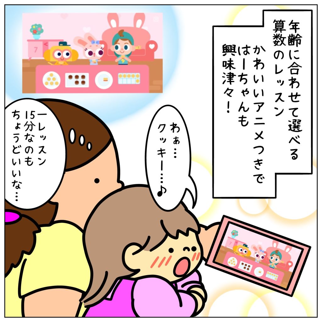 子どもの年齢に合わせたレベルのレッスンを選んで、楽しく算数のお勉強が出来るアプリです♪