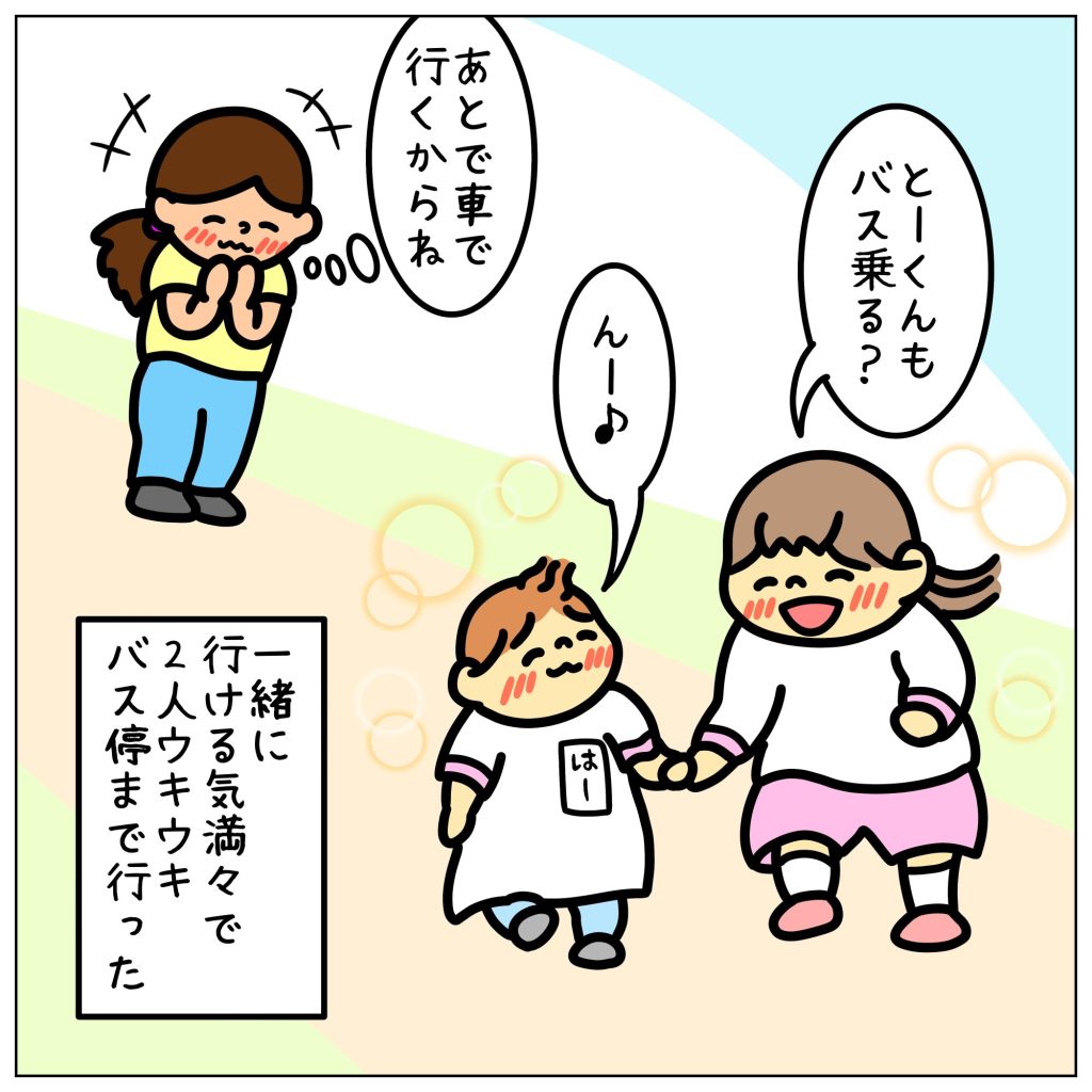 ウキウキとバス停まで向かう2人( ´ ▽ ` )
