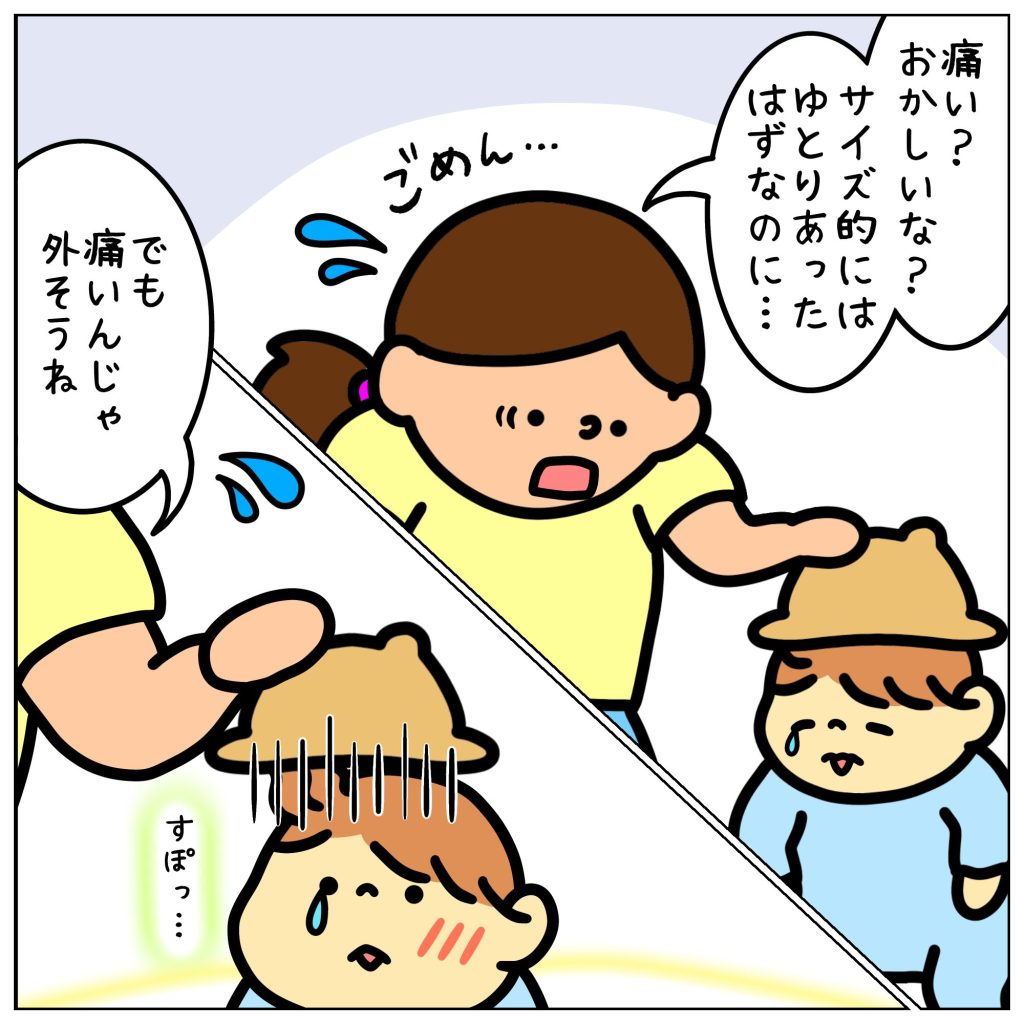 帽子が頭に入らなくて…。