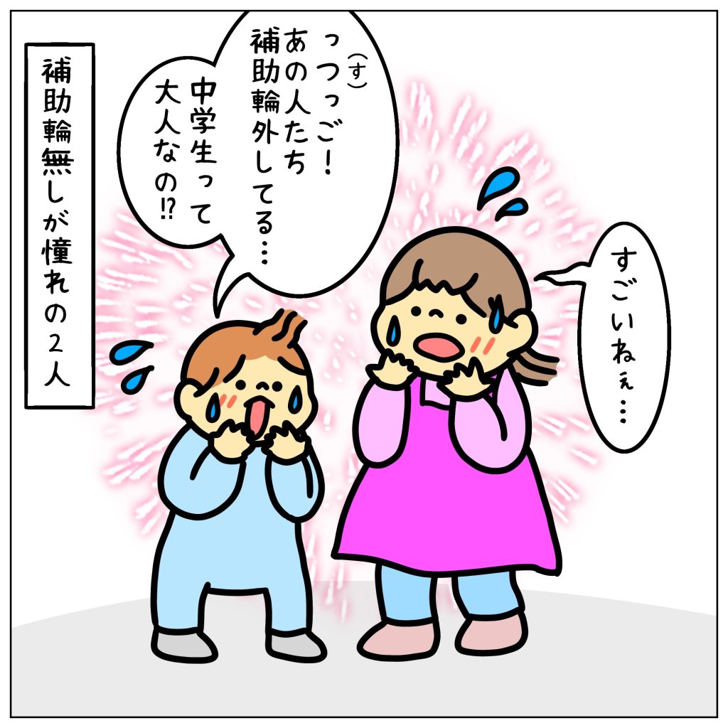 最近ようやく補助輪無し自転車に前向きになってくれて