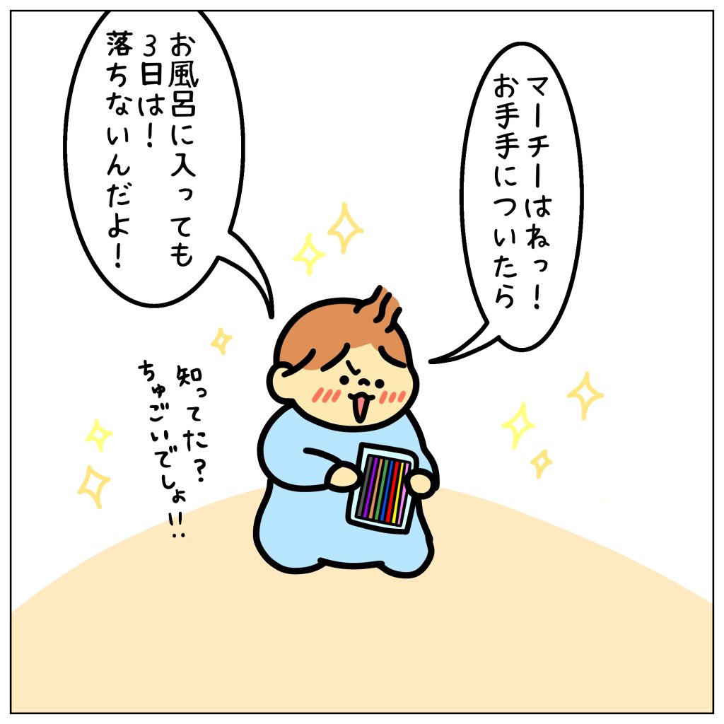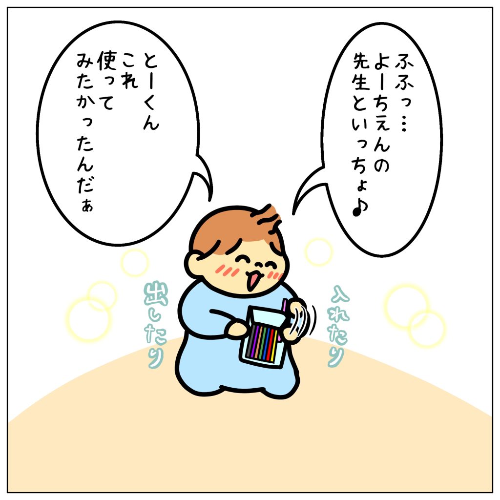 新しいマーチー☆2026.03.15育児絵日記tokun, とーくん, 日常 まえがき新しいペンのセットを買ってあげたら…。ありがとう!広告 あとがき買ってあげた甲斐が ありました☆【とーくん5歳】☆完結したお話はこちらから☆ はーちゃんがとーくんと出会って1週間の出来事 →【初めての1週間】 ・【2人育児☆ある日の寝かしつけ】 ・【不安が和らいだ入園説明会の出来事】 ・【イライラの低気圧の日のお話】 a> ・【子どもの頃の記憶】 ・【バスボールを探して☆】 ・【自分のことを『ぼく』って呼ぶ理由】 ・【お薬もらいに病院へ】 ・【幼稚園のスタートは…ドキドキがいっぱい☆】 ・【おひなさまの思い出☆】 ・【青いお弁当箱と黒いお箸セット☆】 ・【4歳からの習いごと☆】 ・【頑張るはーちゃん☆検尿でパニック】 6 コメントはこちら 同じカテゴリの記事 年長さんが卒園して…☆ とーくんのビックニュース☆ 新しいマーチー☆ ママがさびしくないように…☆ ウェルカム☆やきもち 春休みの旅行の計画☆ ママは〇〇が下手くちょ☆ 子どもたちの癖強ネーミング☆ 名探偵とーくん☆ 結婚の決め手…☆ ココと勝負☆ とーくんの言い間違い☆ ランドセルどうする☆ 自転車の中学生☆ 明日の宿題は…☆ お風呂場にやってきて…☆ 人の話を聞くときは…☆ 心の中の鬼☆ やっぱり鬼怖い☆ 鬼をやっつける☆ 幼稚園で豆まき☆ ココ(猫)を愛でる方法☆ 寝るときの場所☆ パパのお休み☆ 大事なもちもち☆ 「大人」はうれしいけど…☆ 「大人」って言われると…☆ かちゅおぶちで子ども大人☆ 人生は山あり谷あり☆ アレルギー!?騒動☆ ワクワクが止まらない☆ 12月は…☆ ママは何歳☆ 凧上げがしたい☆ 2025年ありがとう☆ 運命の出会い…? とーくんは一等賞をとりたい☆ お子さまランチ☆ キムチが買えなくて…☆ 最近の2人は…☆ 髪の毛のゴミ☆ 夏休みの思い出☆ はーちゃんが野菜を育てる理由☆ 人気の弟、お姉ちゃんの気持ち☆ 甘い言葉☆ 母の日大作戦☆ 母の日のサプライズ☆ ママの眉ペン☆ 百均に行ったとき…☆【後編】 百均に行ったとき…☆【前編】 絶対に忘れちゃいけない〇〇☆ 幼稚園で泣いちゃったわけは…☆ 鬼のお面☆ 似てるってどこが☆ 漢字でお名前☆ 丸にしたかった☆ 期待したのに☆ とーくんは混乱した☆ 初日の出の帰り道☆ 今年初めてみんなでしたこと☆ 今年もよろしくお願いいたします☆ 門前のぴぃ、習わぬ〇〇を解く☆ とーくんクイズ☆ 4歳になったから…☆ 一等賞の秘訣☆ 素直になっていいんだよ☆ 大好き☆ 形状記憶ぴぃ☆ マウントを取る男☆ 真似っこ☆ 靴下☆ 初めての食感☆ おばあちゃんちに急ぐ理由☆ 新学期が不安☆ 夏休みの「おてつだい」☆ 旅行の準備☆ 褒められたけど複雑なのよ…☆ 誕生日プレゼントが欲しかったけど…☆ 4歳になりました☆ 笑いに厳しい3歳☆ パパがとーくんに「大好き」と言ったら☆ とーくん流カルタ☆ 好きな授業は…☆ システムエラー☆ 突然ネイティブ☆ 願いごと☆ とーくんは知っている☆ はーちゃんが怪我した日☆ とーくんの進化☆ 予想外の反応☆ お友だちの条件☆ 入園式で気づいたこと☆ とーくんが見つけた宇宙の…☆ 年少☆とーくんのお悩み 卒園式を終えて☆ 残念なおやつタイム☆ 卒園しました☆ 愛おしい、とーくん☆ おやつが欲しいココ☆ とーくんは先生が好き☆【順番待ち】 お願いだから、やめてくれ☆ 汚い私…☆ もっと英語を覚えよう☆ とーくん☆英語をしゃべろう 褒め上手☆ 初☆猫じゃらし ちょっと、ご報告☆ おもちゃに対するババの感想☆? 雪が好き☆ 急な休園☆ とーくんは先生が好き☆【チャンスは逃さない】 充血☆ とーくんは先生が好き☆【愛の大きさ】 とーくんは先生が好き☆【先生の好きなところ】 とーくんは先生が好き☆【先生のお膝】 あなたのことが心配なのに☆ お年玉の使い道☆ 正しい読み方って大事だよね☆ 食べたら無くなるのは自然の摂理☆ 2023年の年末☆ これは誰の声だろう☆ とーくんは、あかちゃんぼ☆ とーくんを引っ叩いちゃった☆ あけましておめでとうございます☆ とーくん的30秒☆ 衝撃的発言☆ 予防接種に行くぞ☆②【行くの嫌】 ランニング☆ 予防接種に行くぞ☆①【凡ミス】 とーくんの嫉妬心☆ お馬さんに乗ってお風呂へGO☆ 守りたい、みんなを☆ おのこし警察の失敗☆ おやすみって言い直す理由☆ 勝ち取ったラーメン☆ 寒くて震えてたら…☆ とーくんのお土産☆ とーくんは先生が好き☆②【プレゼントの行方】 とーくんは先生が好き☆①【プレゼント】 りんごのボタン☆ レンコンが好きなわけ☆ シークレット年齢トーク☆ 負けてもめげずに☆ ちゃんの呪縛☆ 風邪の次の日☆【風邪をひいた日⑦】 風邪、うつる☆【後編】【風邪をひいた日⑥】 風邪、うつる☆【前編】【風邪をひいた日⑤】 はーちゃんの体の中に☆【風邪をひいた日④】 先生に伝えたかったこと☆【風邪をひいた日③】 病院へ向かう車内で…☆【風邪をひいた日②】 はーちゃんの心配